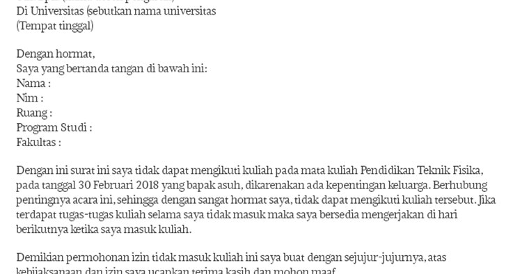 Surat Izin Tidak Masuk Kuliah Karena Sakit Dalam Bahasa Inggris